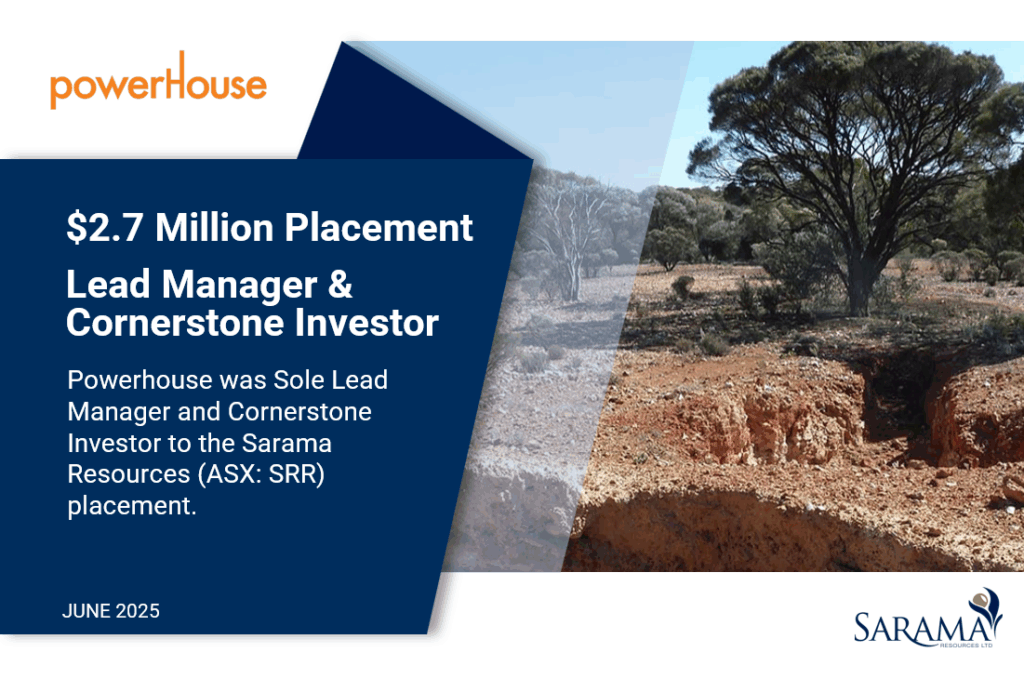 Powerhouse led SRR’s $2.7 million placement as Lead Manager and cornerstone Investor, securing institutional support and driving a 67% share price appreciation.